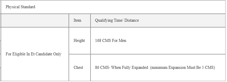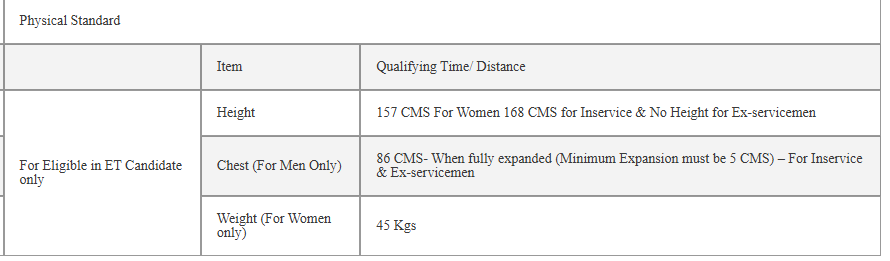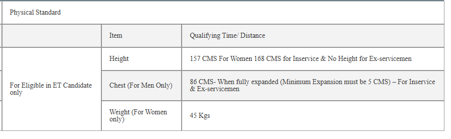 157 CMS For Women 168 CMS for Inservice & No Height for Ex-servicemen