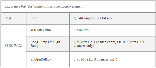 Endurance test  for Women, Inservice, Exservicemen